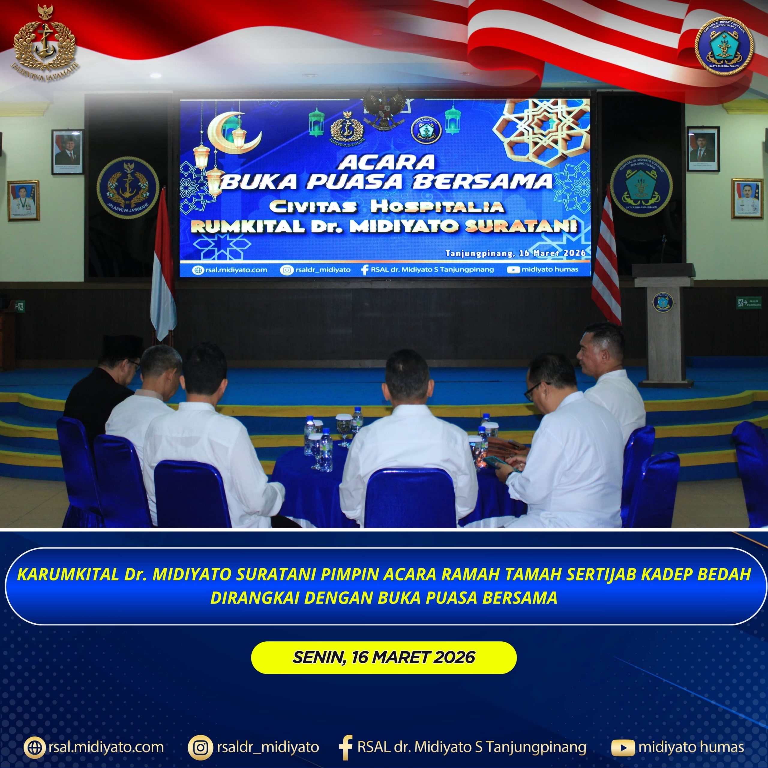 TNI Angkatan Laut. Karumkital dr. Midiyato Suratani Kolonel Laut (K) dr. Widya Wirawan, Sp.PD., M.H., FINASIM., memimpin acara Serah Terima Jabatan (Sertijab) Kepala Departemen (Kadep) Bedah Rumkital dr. Midiyato Suratani yang dilaksanakan di Gedung Serba Guna (GSG) Pulau Serasan Rumkital dr. Midiyato Suratani, Tanjungpinang, Provinsi Kepri. Senin (16/03/2026) Jabatan Kadep Bedah diserahterimakan dari pejabat lama […]