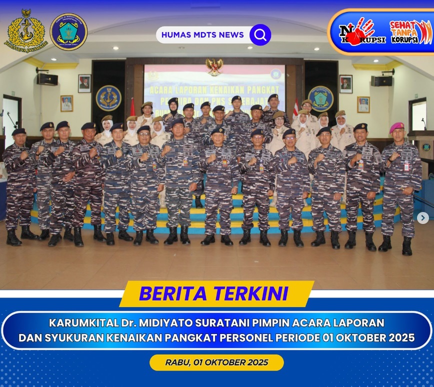 KARUMKITAL Dr. MIDIYATO SURATANI PIMPIN ACARA LAPORAN DAN SYUKURAN KENAIKAN PANGKAT PERSONEL PERIODE 01 OKTOBER 2025 TNI Angkatan Laut. Kepala Rumah Sakit Angkatan Laut (Karumkital) Dr. Midiyato Suratani Kolonel Laut (K) dr. Widya Wirawan, Sp.PD., M.H., FINASIM., memimpin langsung Acara Laporan Kenaikan Pangkat Personel Rumkital Dr. Midiyato Suratani periode 01 Oktober 2025 yang dirangkaikan dengan […]