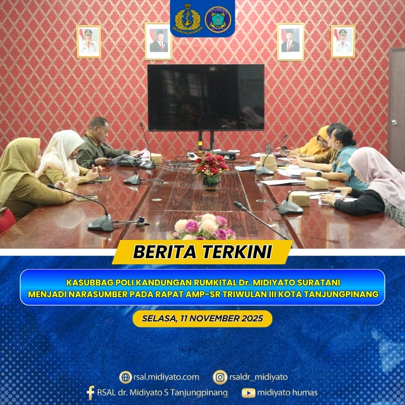 TNI Angkatan Laut. Kasubbag Poli Kandungan Rumkital Dr. Midiyato Suratani Mayor Laut (K/W) dr. Ostririahta, Sp.OG., M.Biomed., menjadi narasumber dalam kegiatan Rapat Pembahasan Kasus Audit Maternal Perinatal Surveilans Respon (AMP-SR) Triwulan III Kota Tanjungpinang Tahun 2025. Kegiatan berlangsung pada Selasa (11/11/2025), di Ruang Pertemuan Dinas Kesehatan, Pengendalian Penduduk dan Keluarga Berencana (DKP2KB) Kota Tanjungpinang, Jl. […]