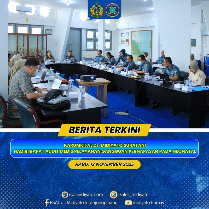 TNI Angkatan Laut. Kepala Rumah Sakit Angkatan Laut (Karumkital) Dr. Midiyato Suratani Kolonel Laut (K) dr. Widya Wirawan, Sp.PD., M.H., FINASIM., menghadiri kegiatan Rapat Audit Medis Pelayanan Gangguan Pernapasan pada Neonatal, bertempat di Gedung Cagar Budaya Rumkital Dr. Midiyato Suratani, Tanjungpinang, Provinsi Kepri. Rabu (12/11/2025) Dalam sambutannya, Karumkital Dr. Midiyato Suratani Kolonel Laut (K) dr. […]