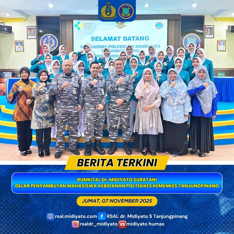 TNI Angkatan Laut. Rumah Sakit Angkatan Laut (Rumkital) Dr. Midiyato Suratani menggelar acara penyambutan bagi Mahasiswa Poltekkes Kemenkes Tanjungpinang Program Studi Kebidanan Tingkat II Semester Ganjil TA 2025/2026 yang akan melaksanakan Praktik Lapangan Klinik (PLK). Kegiatan berlangsung di Gedung Serba Guna (GSG) Pulau Serasan Rumkital Dr. Midiyato Suratani, Tanjungpinang, Provinsi Kepri. Jumat (07/11/2025) Dalam sambutannya, […]