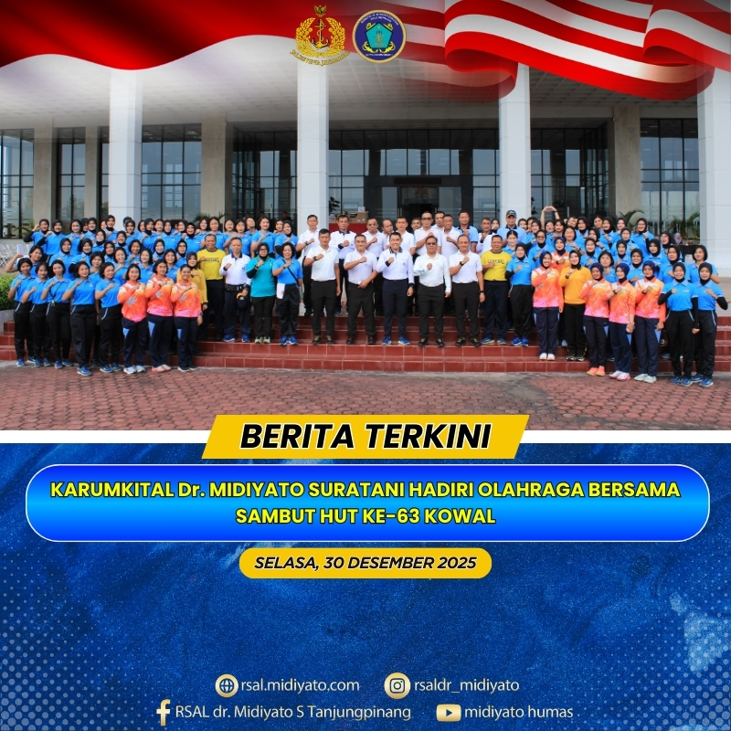 TNI Angkatan Laut. Karumkital dr. Midiyato Suratani Kolonel Laut (K) dr. Widya Wirawan, Sp.PD., M.H., FINASIM., menghadiri kegiatan olahraga bersama dalam rangka menyambut HUT ke-63 Korps Wanita TNI Angkatan Laut (Kowal) Tahun 2026 dengan tema “Kowal Adaptif Teknologi Mendukung TNI Angkatan Laut Modern”, bertempat di Mako Kogabwilhan I Tanjungpinang, Provinsi Kepri. Selasa (30/12/2025) Kegiatan diawali […]
