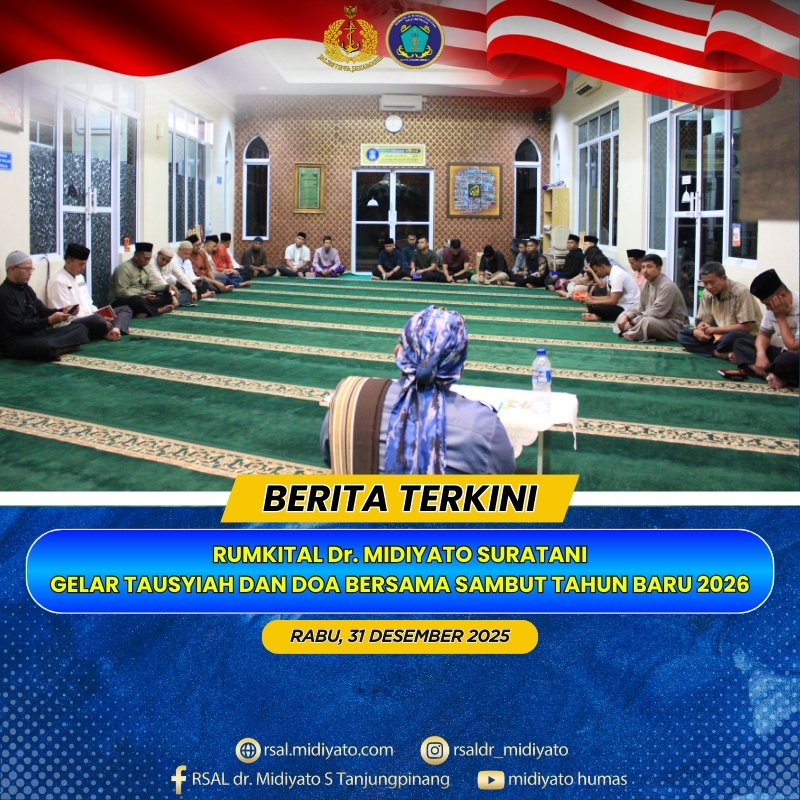 TNI Angkatan Laut. Dalam rangka menyambut Tahun Baru 2026, Rumkital dr. Midiyato Suratani melaksanakan kegiatan Tausyiah dan Doa Bersama, bertempat di Musholla Ar Rasyid Rumkital dr. Midiyato Suratani, Tanjungpinang, Provinsi Kepri. Rabu (31/12/2025) Kegiatan diawali dengan Shalat Maghrib berjamaah, dilanjutkan Istighosah dan Yasinan yang diikuti oleh personel Rumkital dr. Midiyato Suratani sebagai bentuk rasa syukur […]
