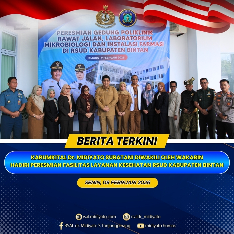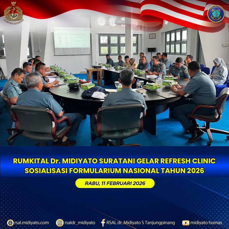 TNI Angkatan Laut. Rumkital dr. Midiyato Suratani menyelenggarakan kegiatan Refresh Clinic dengan materi “Sosialisasi Formularium Nasional Tahun 2026” yang berlangsung di Gedung Cagar Budaya Rumkital dr. Midiyato Suratani, Tanjungpinang, Provinsi Kepri. Rabu (11/02/2026) Kegiatan ini menghadirkan Kadep Farmasi Rumkital dr. Midiyato Suratani, Letkol Laut (K) Unsyura D. Budaya, S.Si., Apt., M.Farm., M.Tr.Opsla., sebagai pemateri utama. […]