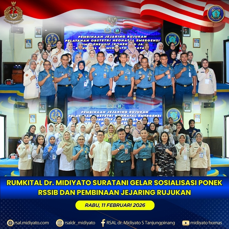 TNI Angkatan Laut. Rumkital dr. Midiyato Suratani menyelenggarakan Kegiatan Sosialisasi Pelayanan Obstetri Neonatal Emergensi Komprehensif (PONEK), Program Rumah Sakit Sayang Ibu dan Bayi (RSSIB), serta Pembinaan Jejaring Rujukan, bertempat di Gedung Serba Guna (GSG) Pulau Serasan Rumkital dr. Midiyato Suratani, Tanjungpinang, Provinsi Kepri. Rabu (11/02/2026) Kegiatan dibuka oleh Wakabin Kolonel Laut (K) drg. Slamet Sutomo, […]