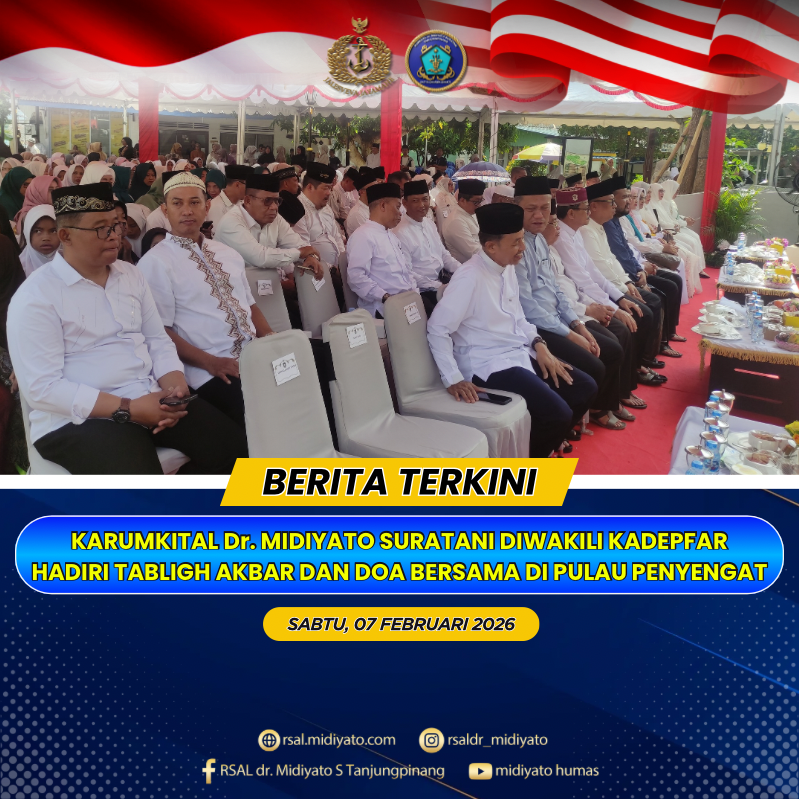 TNI Angkatan Laut. Karumkital dr. Midiyato Suratani Kolonel Laut (K) dr. Widya Wirawan, Sp.PD., M.H., FINASIM., yang diwakili oleh Kadep Farmasi Letkol Laut (K) Unsyura D. Budaya, S.Si., Apt., M.Farm., M.Tr.Opsla., menghadiri kegiatan Tabligh Akbar dan Doa Bersama dalam rangka menyambut Bulan Suci Ramadhan 1447 Hijriah, bertempat di Halaman Balai Kelurahan Penyengat, Kecamatan Tanjungpinang Kota, […]