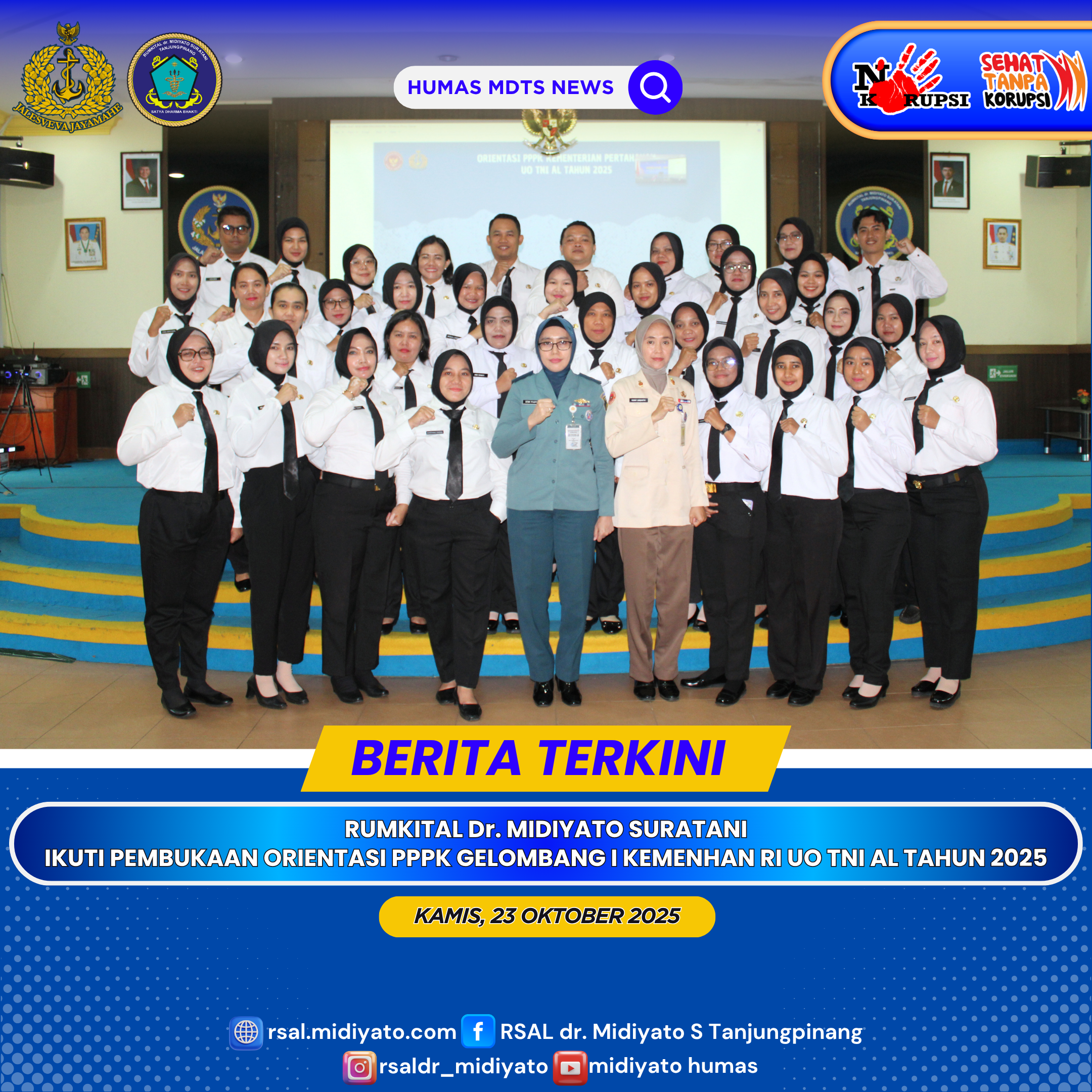 TNI Angkatan Laut. Rumah Sakit Angkatan Laut (Rumkital) Dr. Midiyato Suratani mengikuti kegiatan Pembukaan Orientasi Pegawai Pemerintah dengan Perjanjian Kerja (PPPK) Gelombang I Kementerian Pertahanan (Kemenhan) Republik Indonesia (RI) Unit Organisasi TNI Angkatan Laut Tahun 2025, yang dilaksanakan secara Video Conference (Vicon), di Gedung Serba Guna (GSG) Pulau Serasan, Rumkital Dr. Midiyato Suratani, Tanjungpinang, Provinsi […]