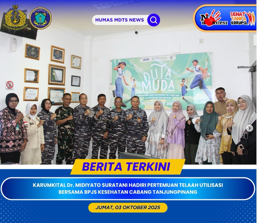 TNI Angkatan Laut. Kepala Rumah Sakit Angkatan Laut (Karumkital) Dr. Midiyato Suratani Kolonel Laut (K) dr. Widya Wirawan, Sp.PD., M.H., FINASIM., menghadiri undangan Pertemuan Utilization Review/Telaah Utilisasi bersama BPJS Kesehatan Cabang Tanjungpinang, bertempat di Rupat BPJS Kesehatan Cabang Tanjungpinang, Jl. Sunaryo No.9, Bukit Cermin, Kota Tanjungpinang, Provinsi Kepri. Jumat (03/10/2025) Kegiatan ini digelar dalam rangka […]